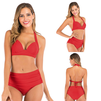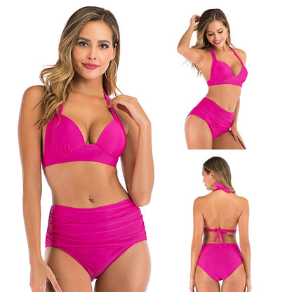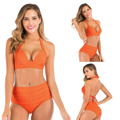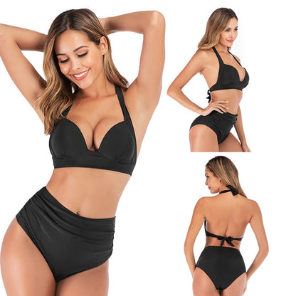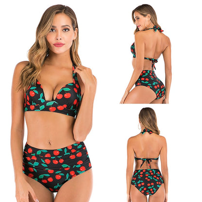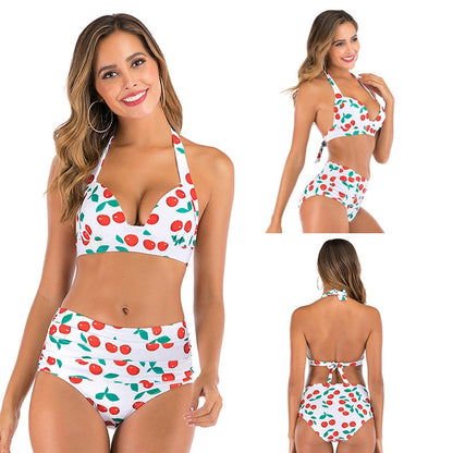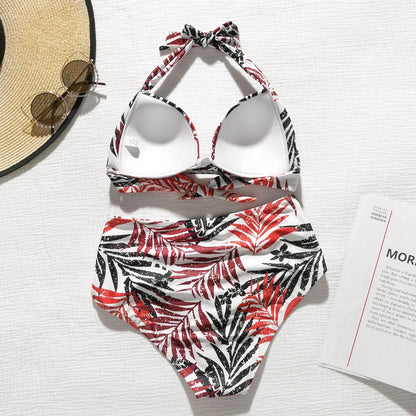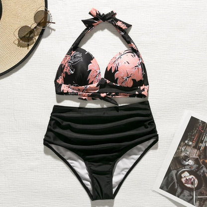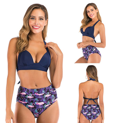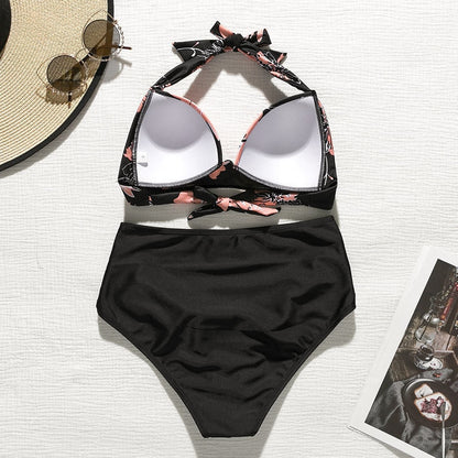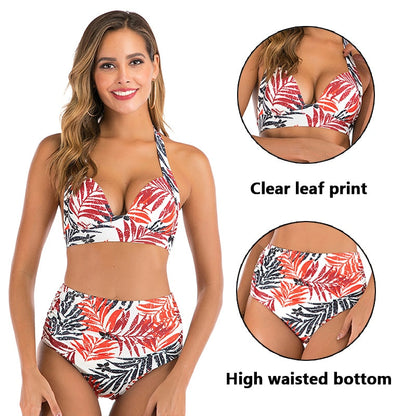 2 Piece High waist bikini set Halter bathing suit swimsuit Plus size bikini Floral print swimwear
