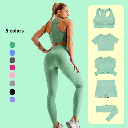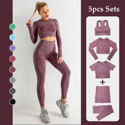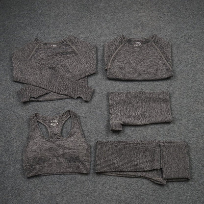 5 Piece Fitness Yoga Pants Leggings Gym Clothing Women's Sportswear Sports Set Top Tights Sport Bra Set