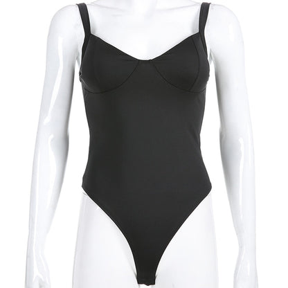 Deep V Neck Fashion Elegant Body Spaghetti Strap Bodycon Bodysuit