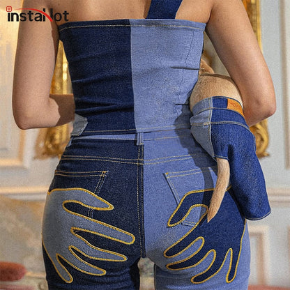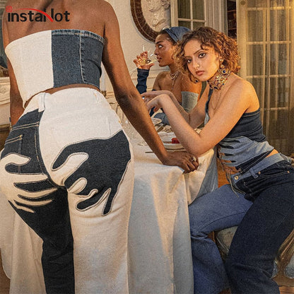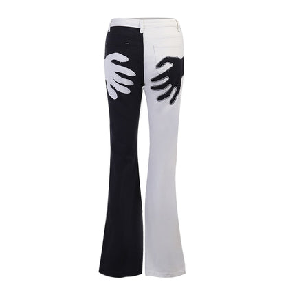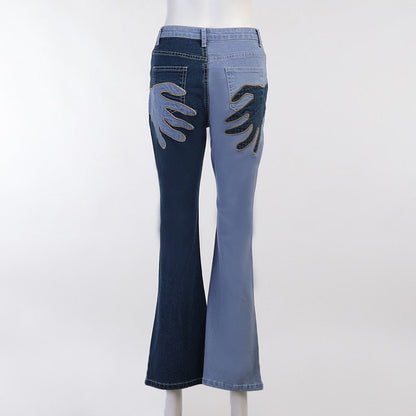 Flare Jeans Embroidery Trousers Y2K Casual Streetwear Denim Fashion Vintage Patchwork Pants