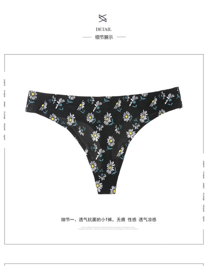 Pay in 4 instalments with AfterPay, Buy Now Pay Later3 Pack Floral Print Panties String Soft Seamless Women's Underwear Low Waist Thongs Cotton Female Lingerie Briefs