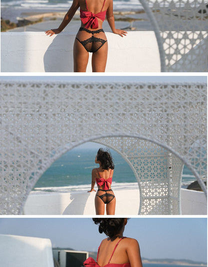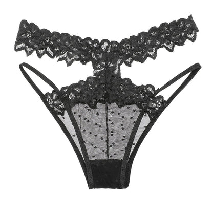 Lace Panties High Rise Bandage Underpants Hollow Out Transparent Underwear Wave Point Seamless Thong Briefs