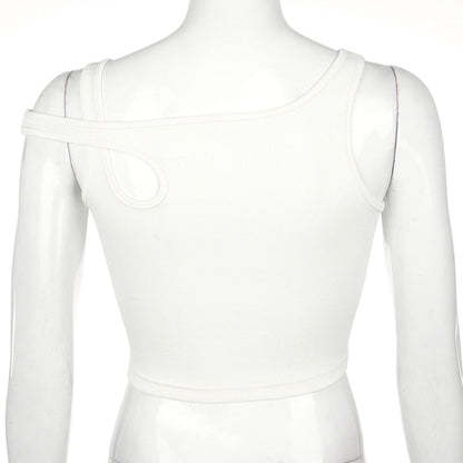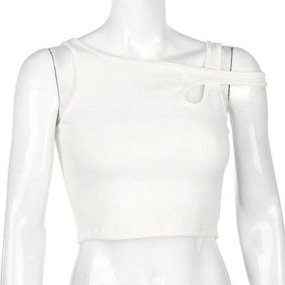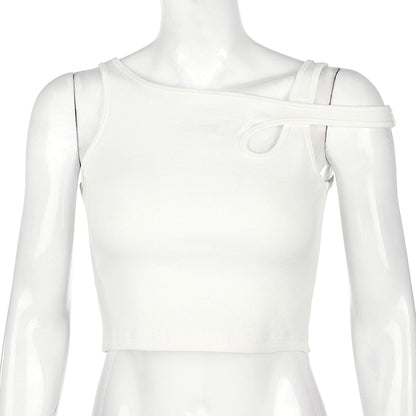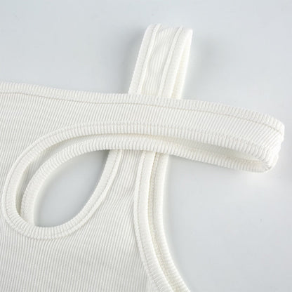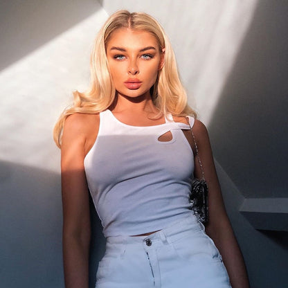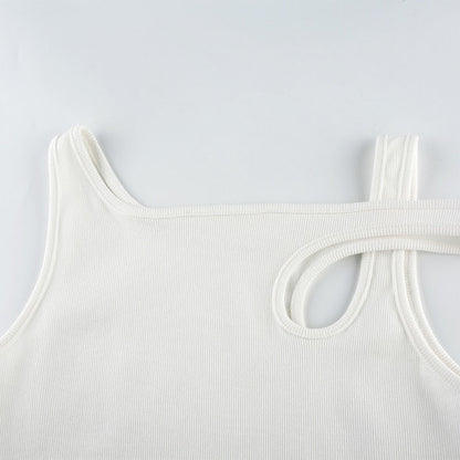 Sleeveless Summer White Tank Top Bandage Hollow Out Ribbed Crop Tops Tees Fashion Fitness Mini Vest Top