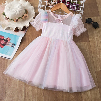 Summer Girls Flower Lace Dress Embroidery Kids Princess Party Ball Gown Children Clothing Toddler Girls Wear Dress