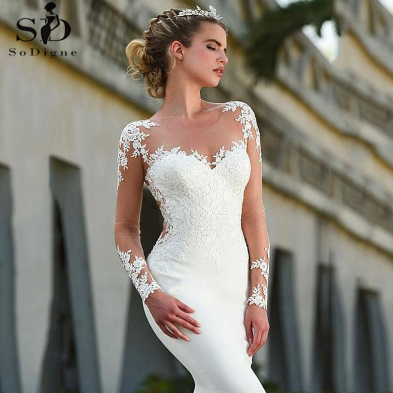 Pay in 4 instalments with AfterPay, Buy Now Pay LaterVintage Mermaid Wedding Dress Scoop-Neck Full Sleeves Wedding Gown Zipper Back Lace Satin Bride Dress Robe