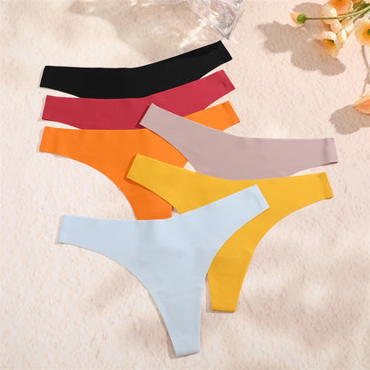 3 Pack Women Ice Silk Seamless Underpants Panties V-Waist Sport Thongs Low Rise Breathable G-string Underwear
