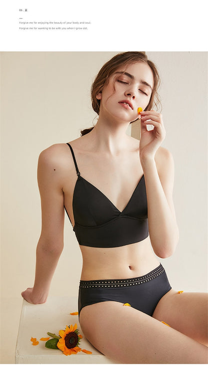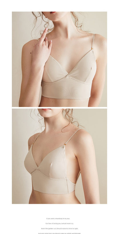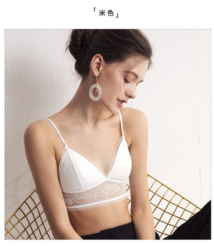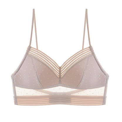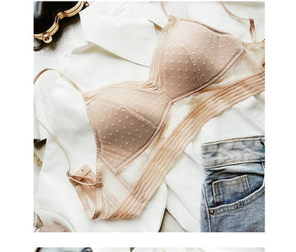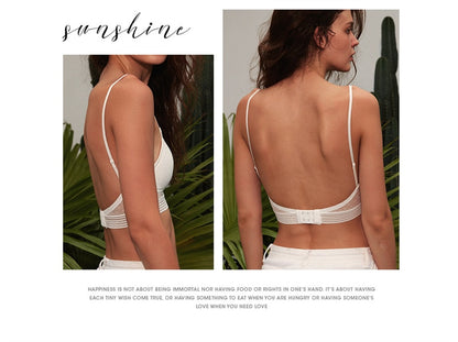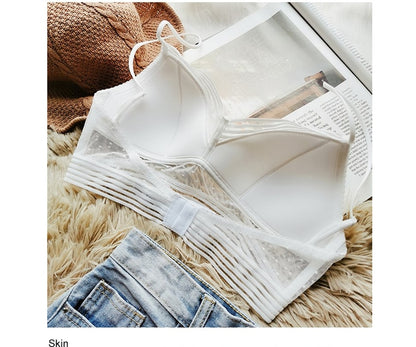 Backless Bra Triangular Women's U-Shape Beauty Back Lingerie Dot Mesh Thin Soft Seamless Bralette Underwear