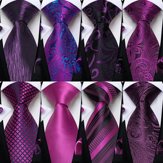 Luxury Purple Paisley Silk Tie Set for Men – 8cm Gift Set