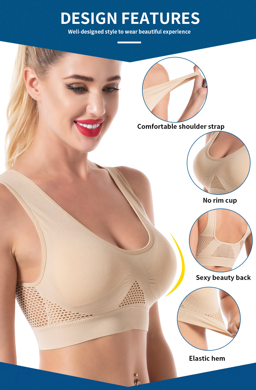 Women's Unwired Bras Wireless S-6XL Plus Size Backless Push Up Seamless Mesh Top Bra Non Bones Frame Sports Bras