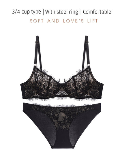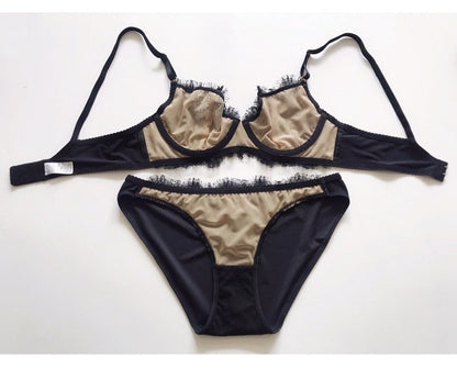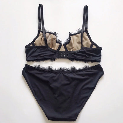2 Piece Underwear Eyelash lace Bralette Brassiere Bra Push Up Bras and Panties Sexy Lingerie Set