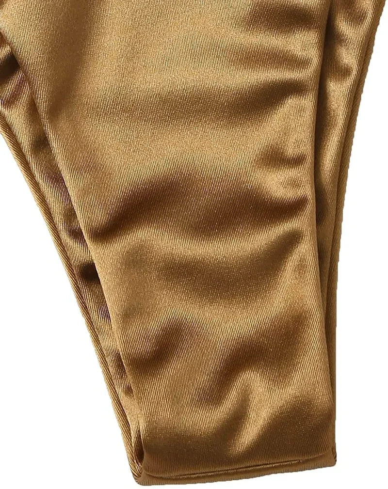 2 Piece Halter Brazilian Metallic Satin Swimwear Swimsuit Two-piece Bikini Set High Cut Bathing Suit Swim Beachwear