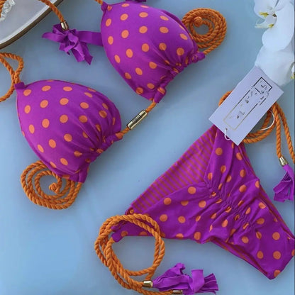 2 Piece Printed Swimwear Rope Bikini Split Swimsuit Bikini Set