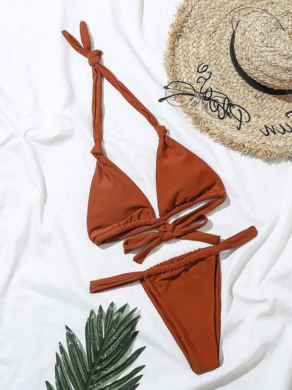 2 Piece Brazilian Micro Swimsuit Mini Thong Bikinis Set Beachwear Halter Top Swimwear Swimming Wear for Bathing Suit