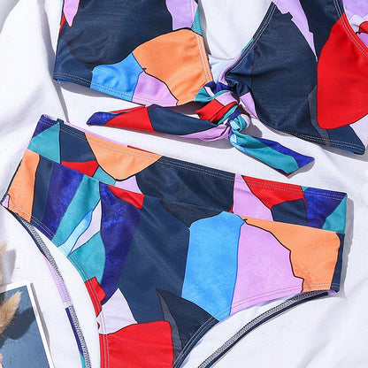 2 Piece Geometry print swimsuit Sexy ruffle bikini High waist swimwear Bandeau knot bathing suit Vintage beach wear