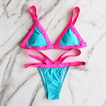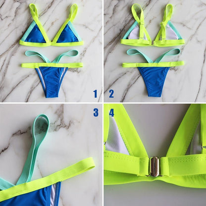 Pay in 4 instalments with AfterPay, Buy Now Pay Later2 Piece Patchwork Swimsuit Brazilian Solid Swimwear Thong Beachwear High Cut Bathing Suit Swimwear Bikini Set