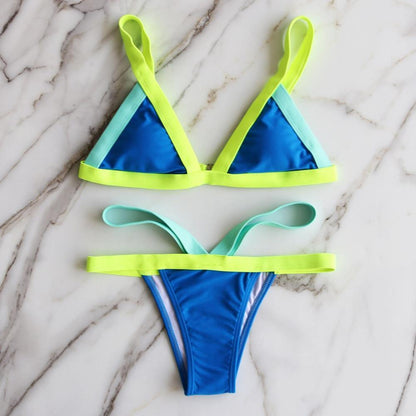 2 Piece Patchwork Swimsuit Brazilian Solid Swimwear Thong Beachwear High Cut Bathing Suit Swimwear Bikini Set