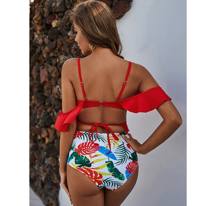 2 Piece Ruffle High Waist Bikini Swimwear Women Swimsuit Cross Bikini Set Off The Shoulder Bathing Suits Summer Beach Wear