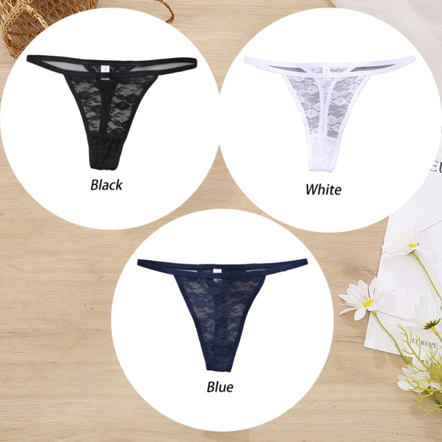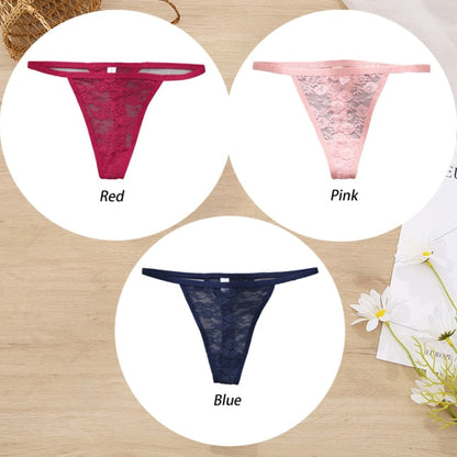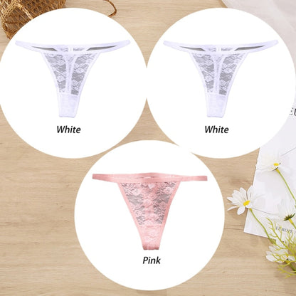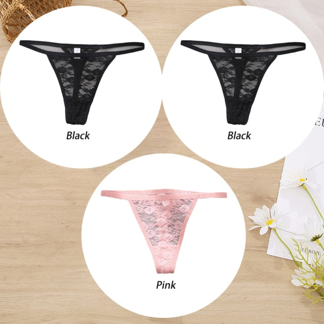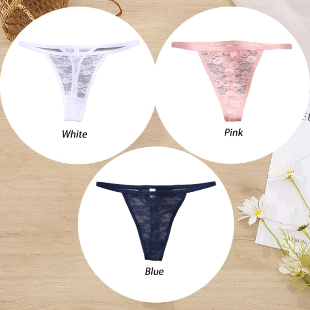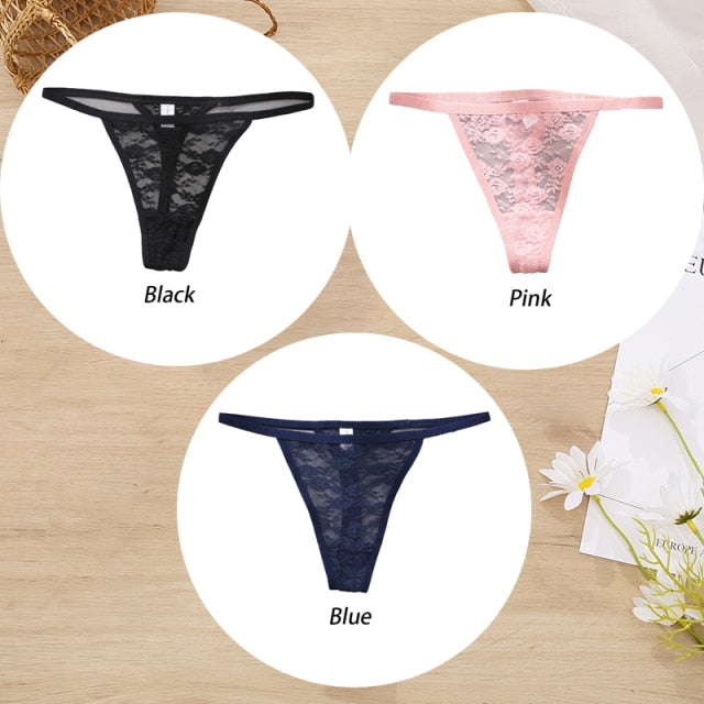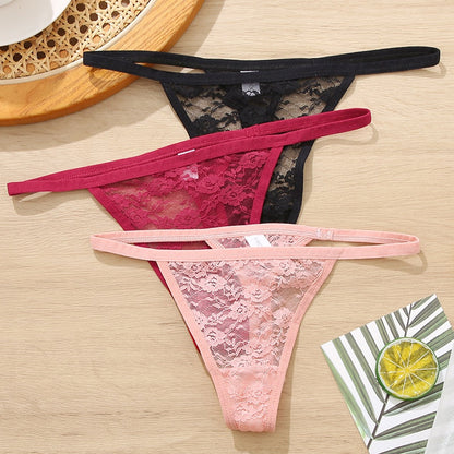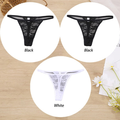 3 Pack Lace Panties Floral Underwear Thongs G-String Low-Waist Underpants Perspective Lingerie Set