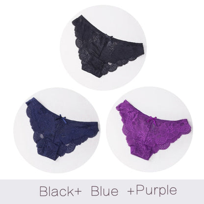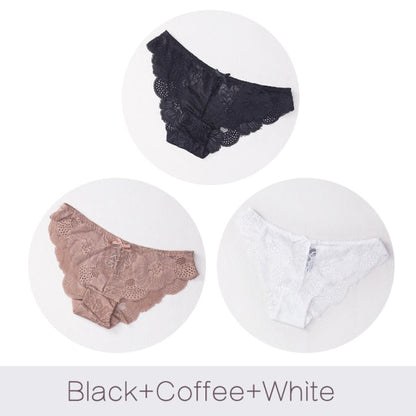3 Pack Lace Panties Seamless Underwear Floral Cotton Mix Transparent Bikini Briefs