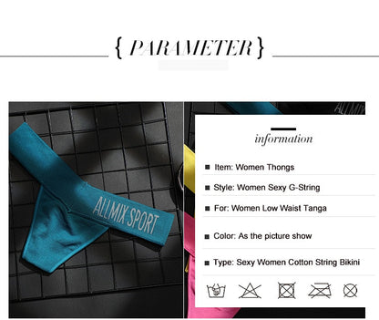 3 Pack Women's Cotton T-Back Panties Set Underwear Seamless Letter Solid Thongs G-String Low Waist Lingerie