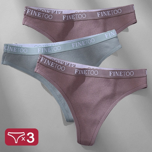 3 Pack Panties Cotton Lingerie Underpants Briefs Thong G-String Design Intimates T-back Panty