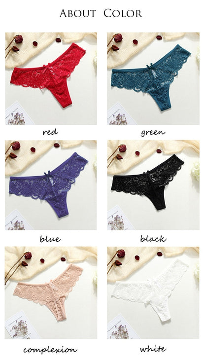 3 Piece Lace Sexy G-String Briefs Lingerie Low Waist Cotton T-back Female Underwear Panties