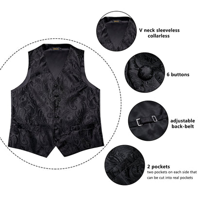 Pay in 4 instalments with AfterPay, Buy Now Pay Later5 Piece Vests Slim Fit Mens Wedding Suit Casual Sleeveless Formal Business Waistcoat Hanky Necktie Bow Tie Set