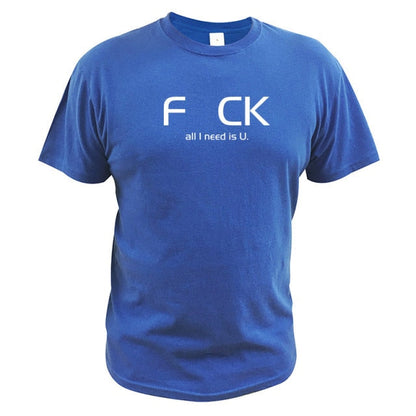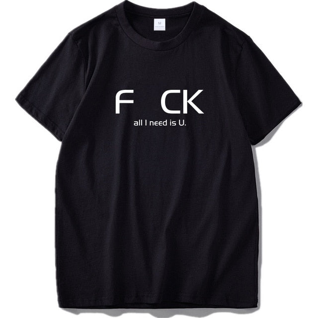 All I Need is U Funny Letter Print Cotton T-shirt Original Design Top Short Sleeve O-neck T shirt