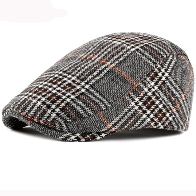 Autumn Winter Hat Men Women Wool Beret Vintage Plaid Ivy Newsboy Flat Cap Retro Artist Painter Beret Hat