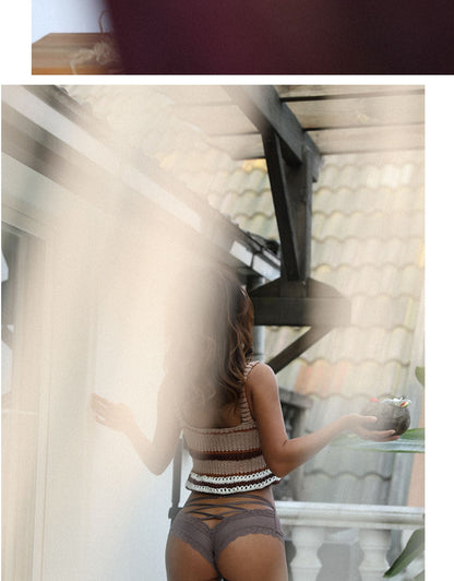 Pay in 4 instalments with AfterPay, Buy Now Pay LaterBack Crossing Bandage Hollow Out Lace Edge Seamless Underwear Women Transparent Lingerie Solid Briefs Thong Sexy Panties