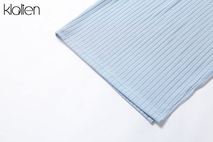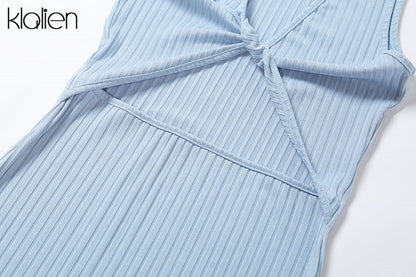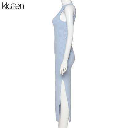 Backless fashion simple black rib knitting maxi streetwear casual Dress