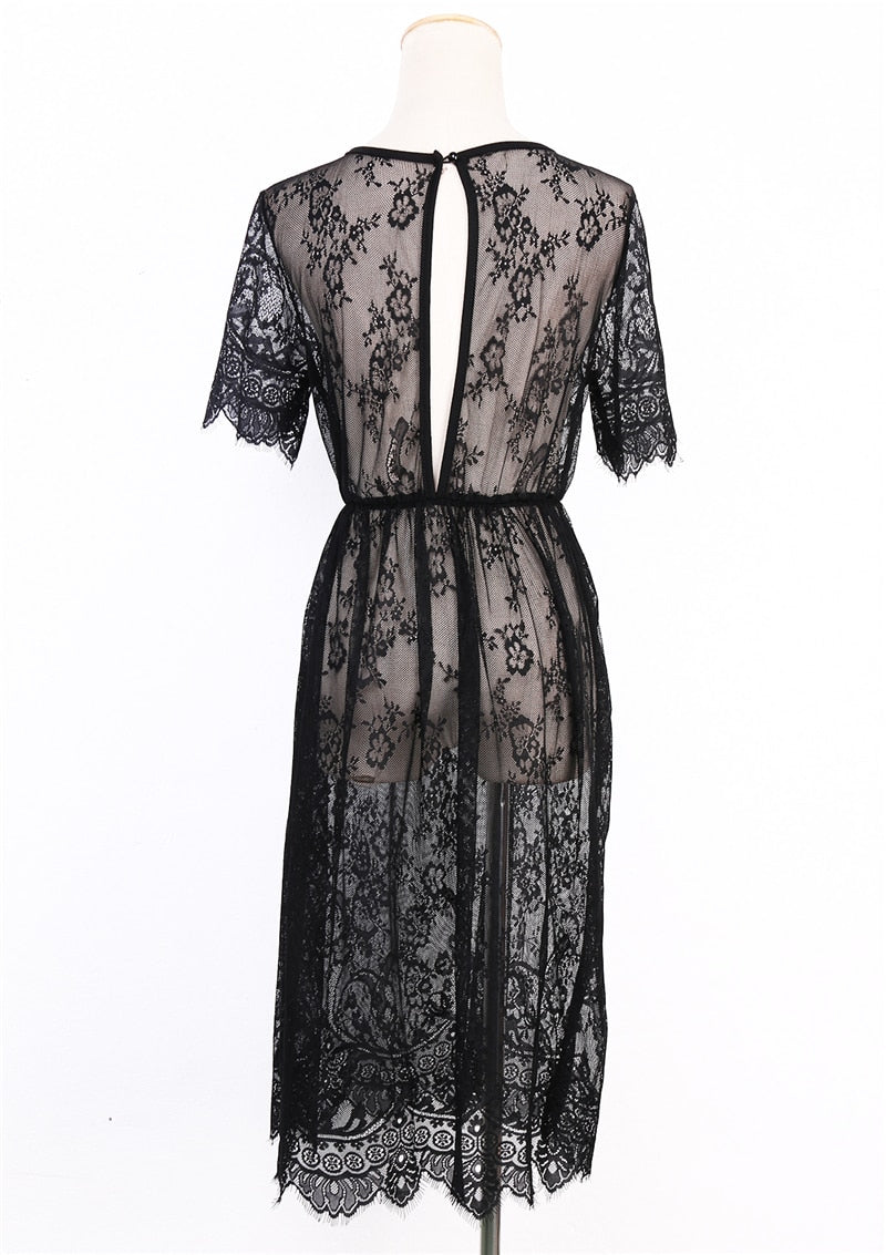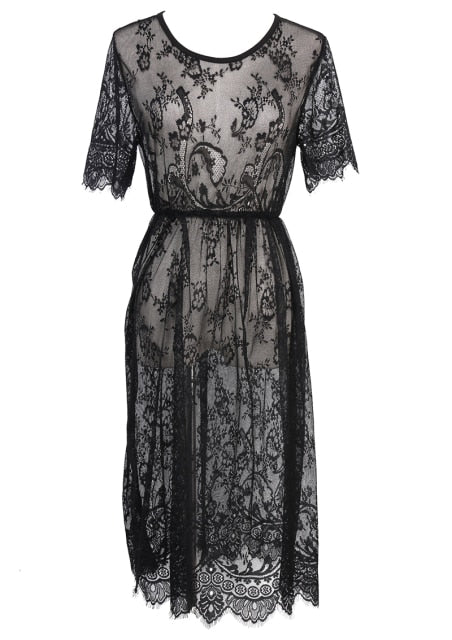 Pay in 4 instalments with AfterPay, Buy Now Pay LaterBeachwear Lace Crochet Beach Mesh Summer New Fashion Beach Style Boho Short Sleeve A Line Dress