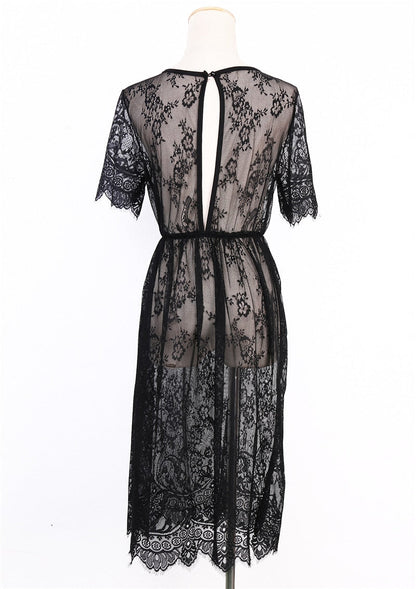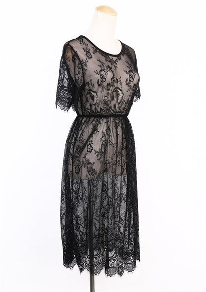 Beachwear Lace Crochet Beach Mesh Summer New Fashion Beach Style Boho Short Sleeve A Line Dress