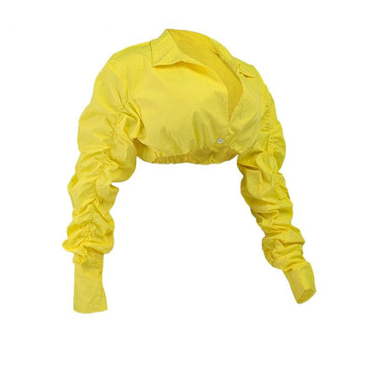 Button Ruched White Puff Sleeve Blouse Shirts Women's Long Sleeve Crop Blouses Solid Top