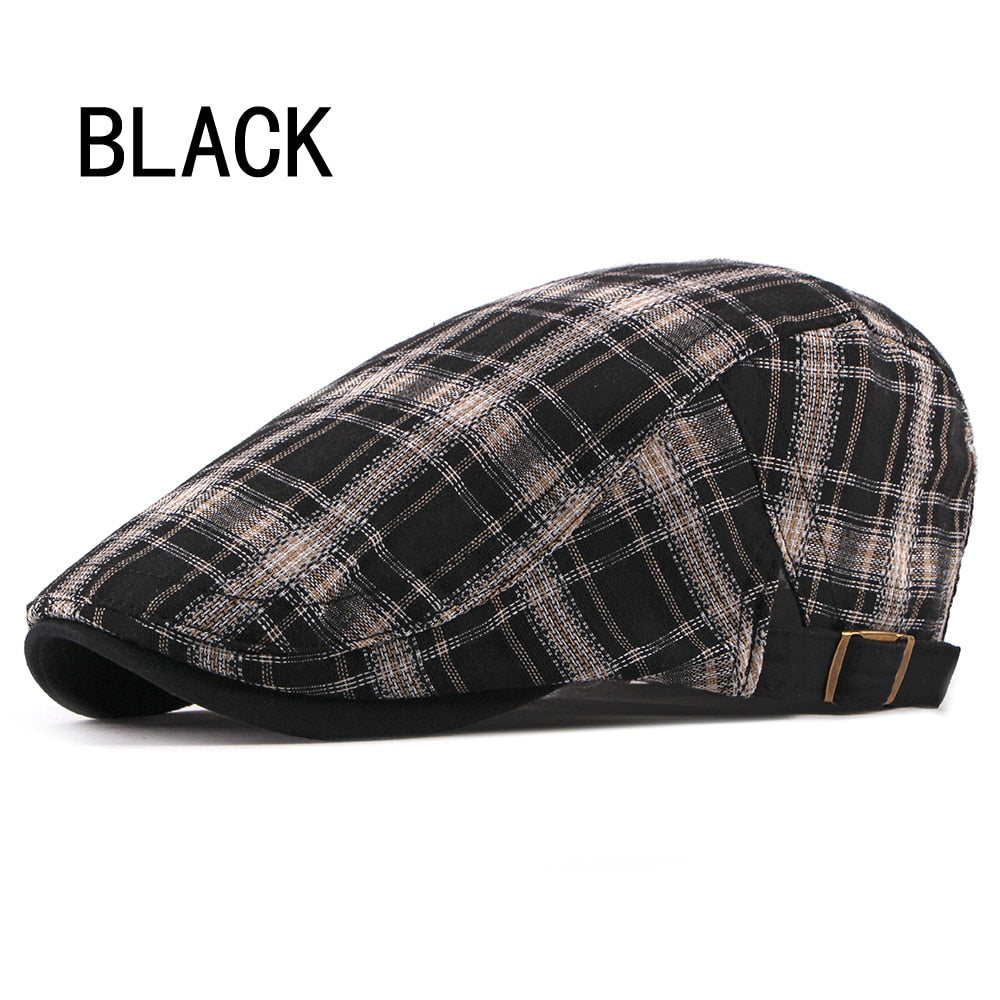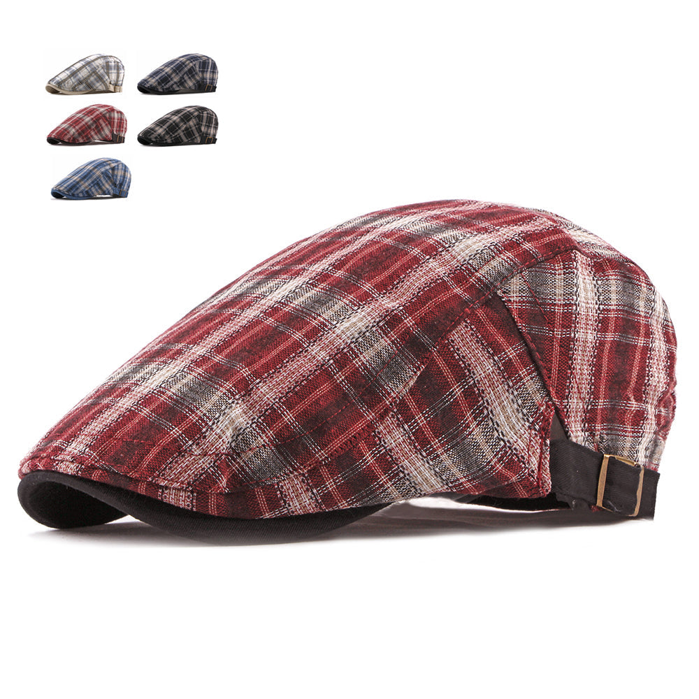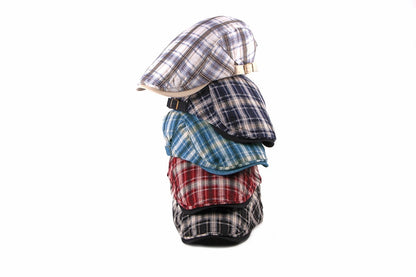 Casual Cotton Plaid Flat Adjustable Beret Flay Ivy News Boy Cap