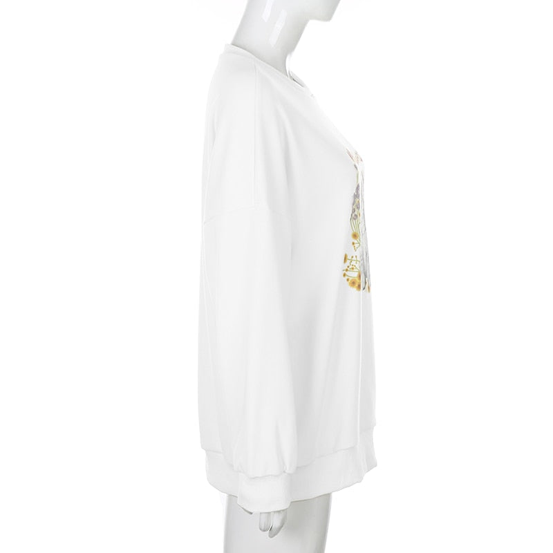 Cat Print Cute White Oversized Autumn Cute Long Sleeve Sweat Shirt Casual Loose Pullover Streetwear Sweatshirt