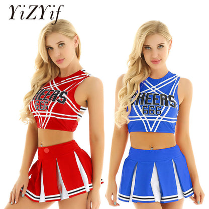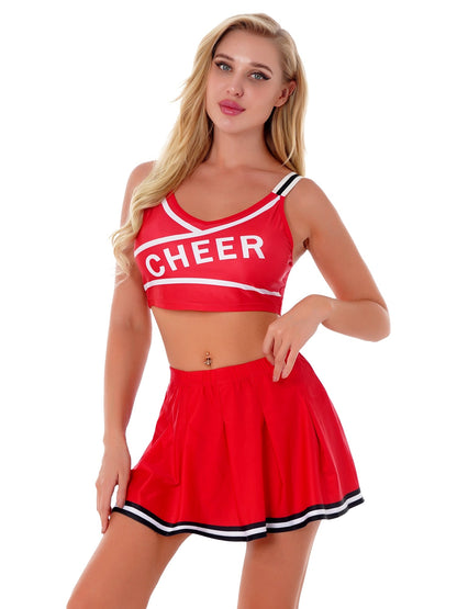 2 Piece Cosplay Uniform Lingerie Cheerleader Halloween Costume Set