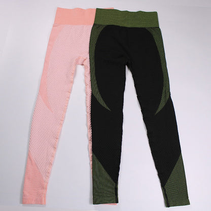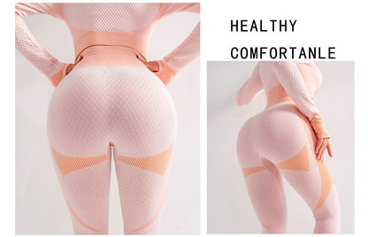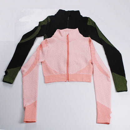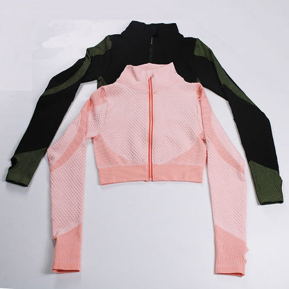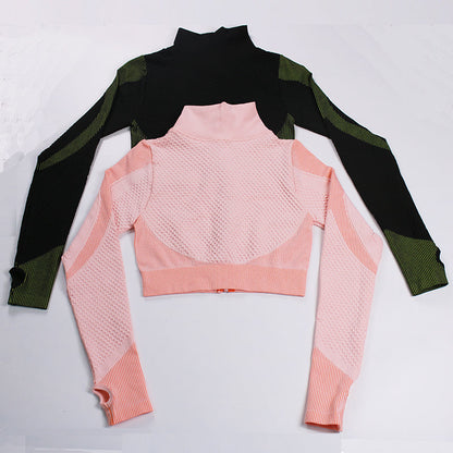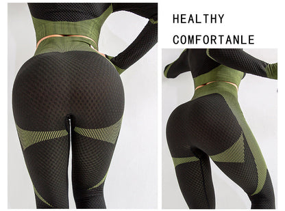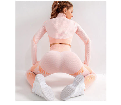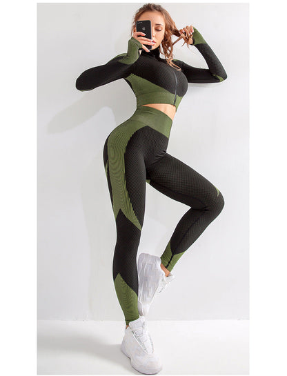 2 Piece Sports Yoga Gym Fitness Leggings Sportswear Seamless Athletic Long Sleeve Zip Up Top Set