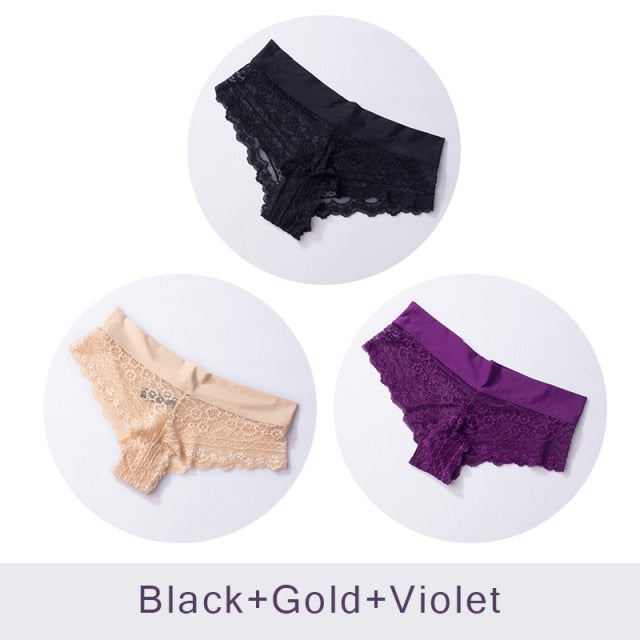 3 Pack Ultra Soft Lace Panties Thongs G Strings Seamless Underwear Panty Briefs