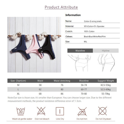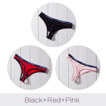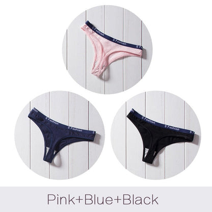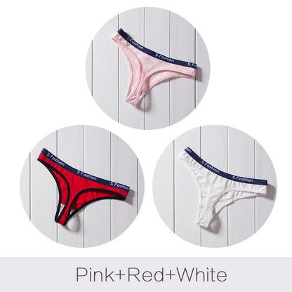 3 Pack G-String Cotton Mix Panties T Back Underwear Seamless Thong Bikini Low Rise Waist Transparent Briefs