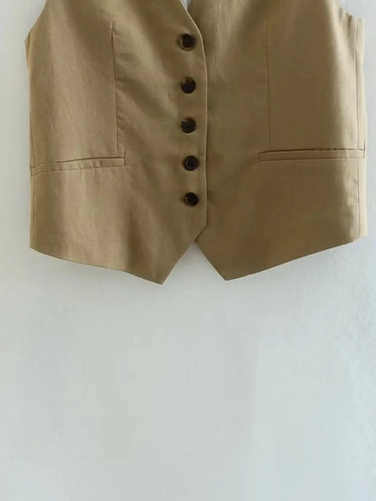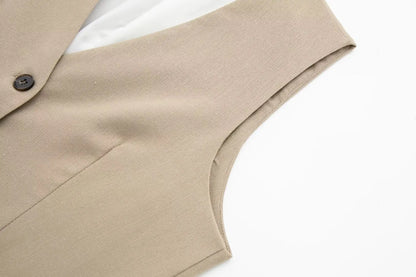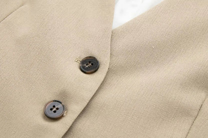 2 Piece Women's Suit Button V Neck Waistcoats Elegant Vest Top Zipper High Waist Slim Pants Shorts Summer Female Streetwear