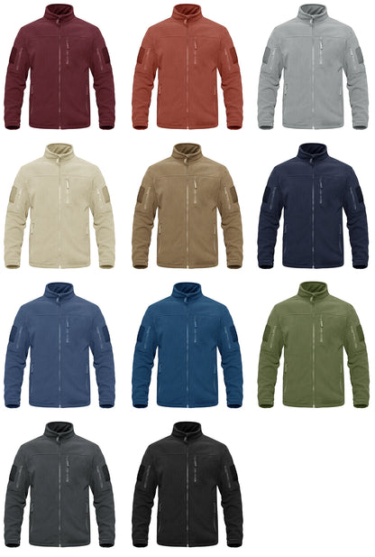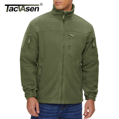 Full Zip Up Tactical Green Fleece Jacket Thermal Warm Work Coats Men's Pockets Safari Jacket Hiking Outwear Windbreaker