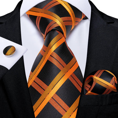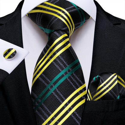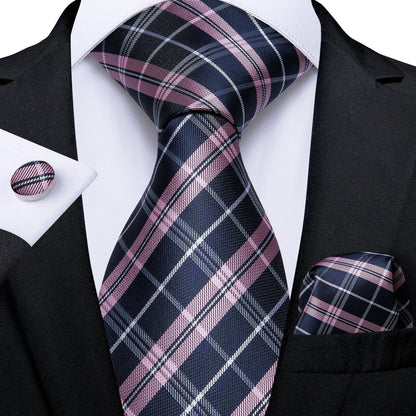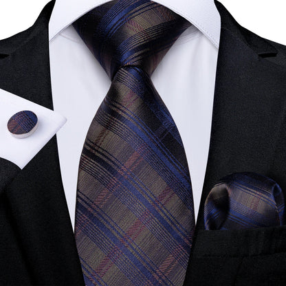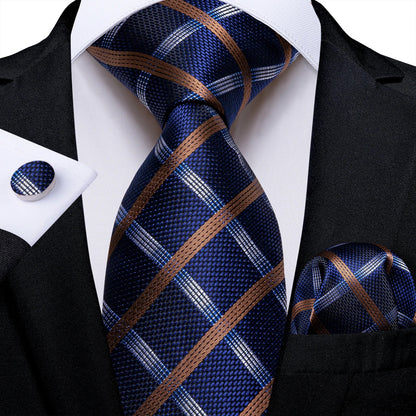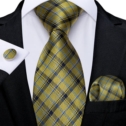 Plaid Print Men's Tie Set 8cm Width Neck Tie Handkerchief Cufflinks Business Wedding Tie Gift Set