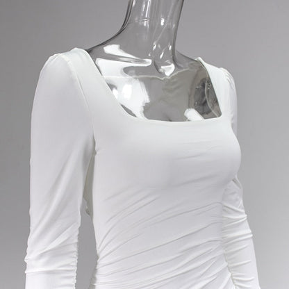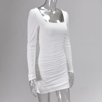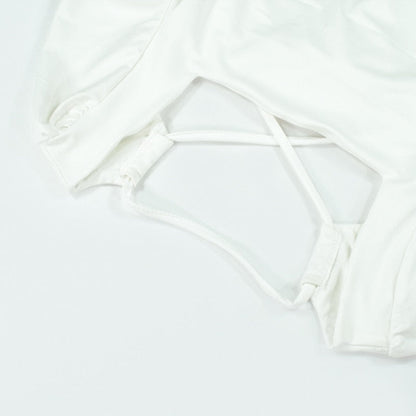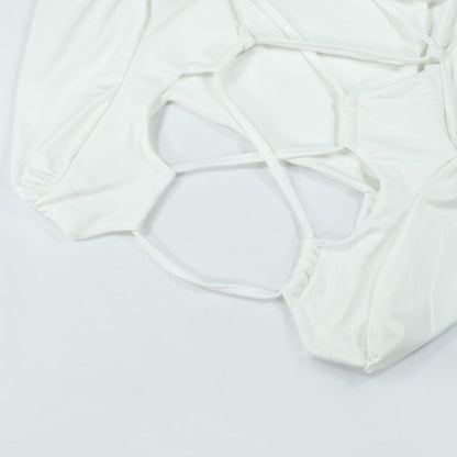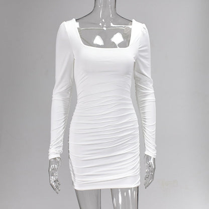 Backless Sexy White Long Sleeve Square Collar Bodycon Lacing Party Dress Summer Club Mini Dress