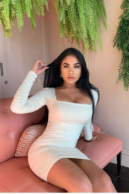Pay in 4 instalments with AfterPay, Buy Now Pay LaterBackless Sexy White Long Sleeve Square Collar Bodycon Lacing Party Dress Summer Club Mini Dress