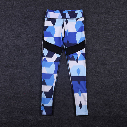Blue Camouflage Sports Yoga Workout Gym Fitness Exercise Leggings