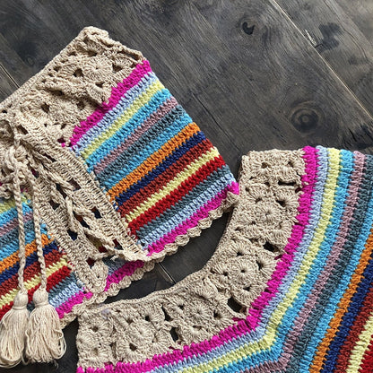 Colorful Stripes Bathing Suit Crochet knit Bikini Set Swimwear Crop Top Shorts Swimwear