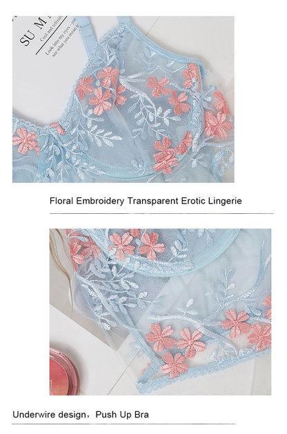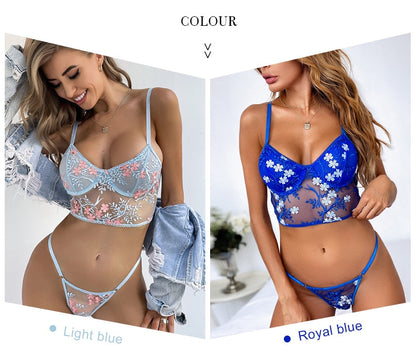 Embroidery Lingerie Set Women 2 Piece Sensual Lingerie Floral Bra Lace Women's Underwear Set Brief Set