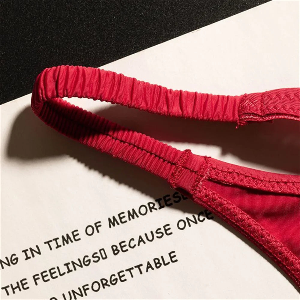 High Slit Ice Silk Thong with Elastic Pleated Waistband Sports V-shape Fitness G-string Plus Size Panties