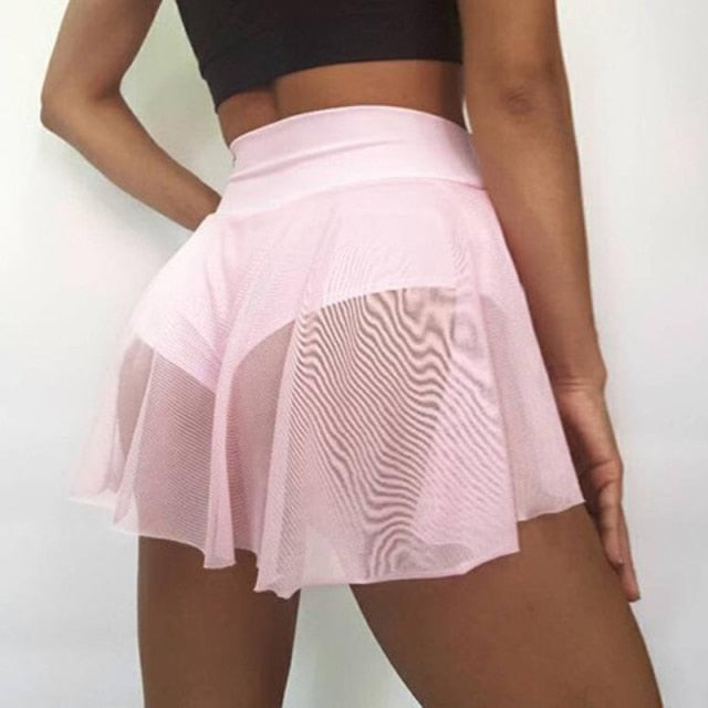 See Through Shorts Skirt Ladies Summer Streetwear Elegant Dancewear Aesthetic Pink Skorts Chiffon Skirts Sexy Ruffle Shorts